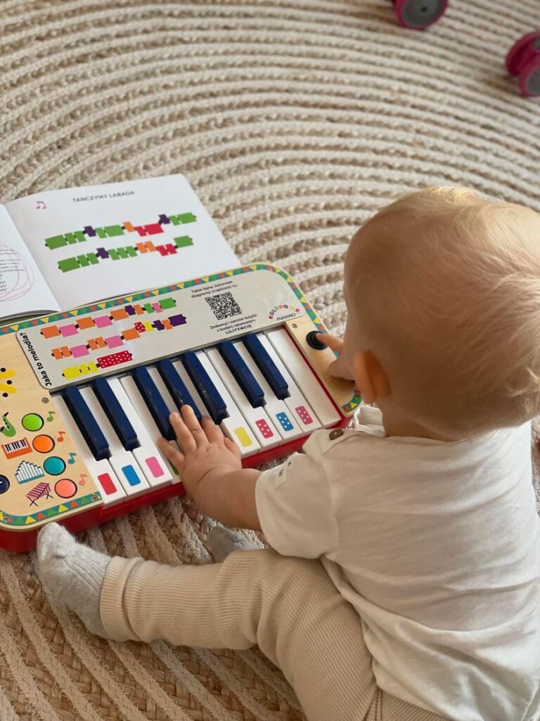 Jedyna taka na rynku książeczka do nauki gry na pianinie, w której nie ma nut. Pomysł opiera się na systemie specjalnych naklejek, które można wykorzystać na zwykłym pianinie.
