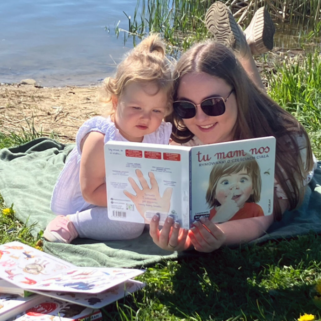 Dla małych dzieci nie ma nic nudniejszego niż wierszyk upchany na jednej stronie i opatrzony małym rysunkiem – taka forma jest w porządku tylko dla rodzica. Maluszki uwielbiają szybko przewracać kartki i widzieć to, co słyszą. Dlatego też stworzyłam książkę „Tu mam nos”, która jest atrakcyjna dla tych najbardziej wymagających odbiorców.