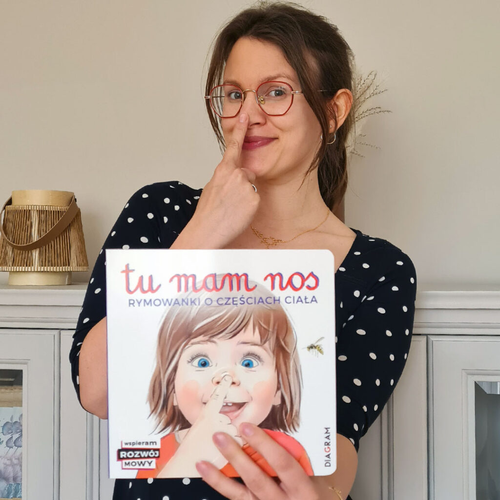 Polecam książkę „Tu mam nos do rozwoju mowy i świetnej zabawy! Gesty w połączeniu z rymowanką to świetny przepis na zachęcenie dziecka do powtarzania nowych słów.