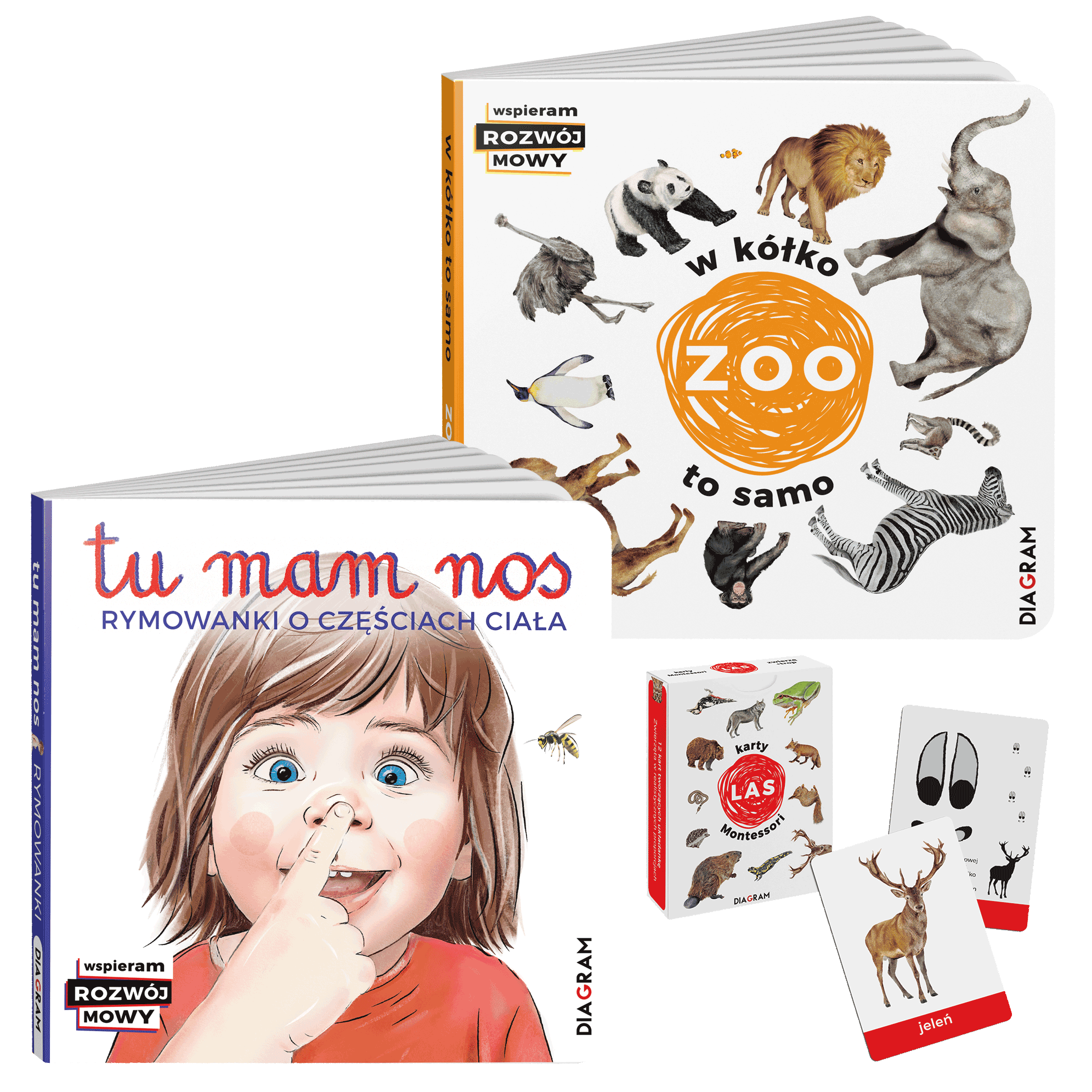 Przekonaj się, że dzieci kochają prostotę i naturalność. Twarze dzieci oraz rzeczywiste ilustracje zwierząt potrafią zaciekawić maluchy i zapewnić godziny wspólnej zabawy. Ten pakiet zawiera 2 książki (Tu mam nos + W kółko to samo ZOO) i karty Montessori LAS. Zamów już teraz!